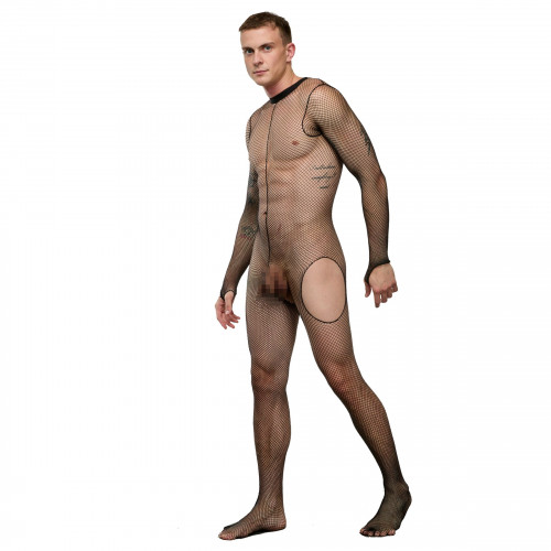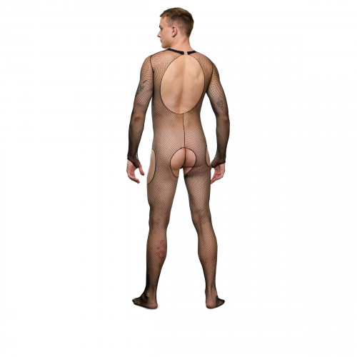 Мужской черный сетчатый кэтсьюит с интимным доступом