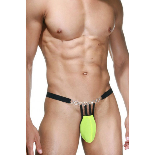 Мужские стринги из мягкой ткани в интимной области и украшением в виде цепочки. Отлично подойдут для тех, кто любит эксперименты и не стесняются своего тела.