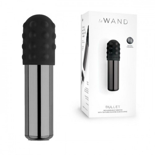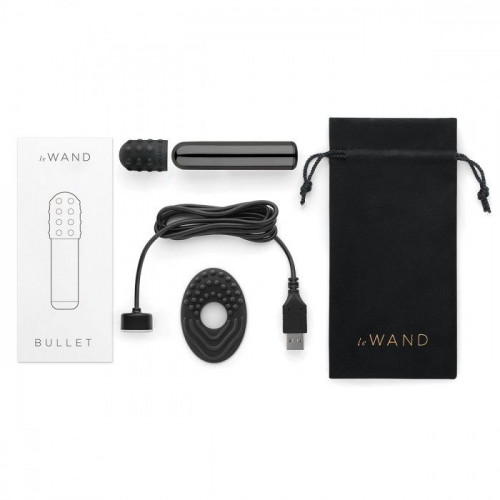 Черная вибропулька Le Wand Bullet с 2 нежными насадками