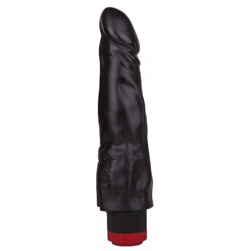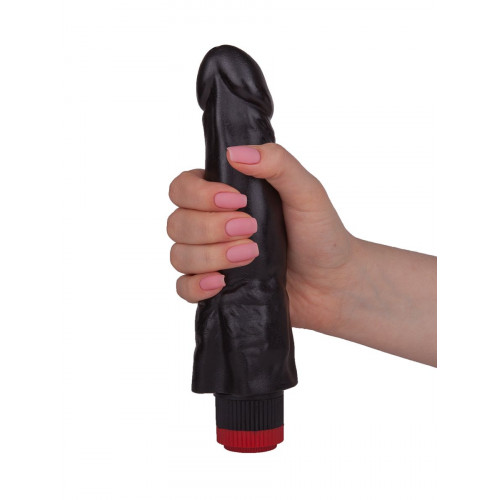 Чёрный вибромассажер с широким основанием - 18,8 см.