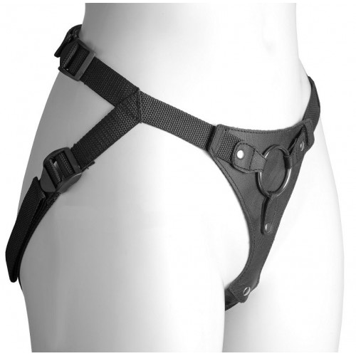 Черный женский пояс-трусики с кольцом для фиксации насадок