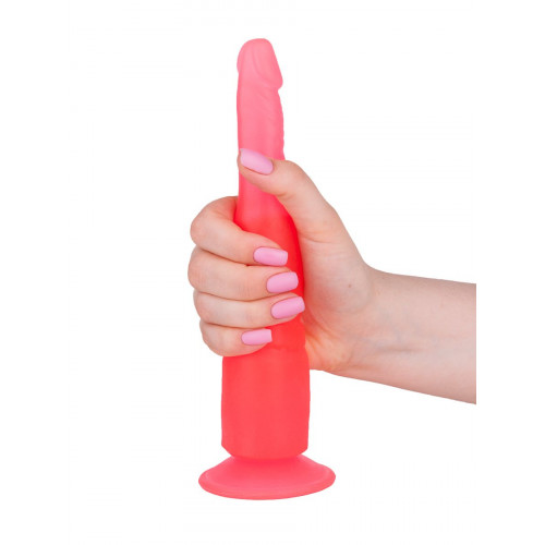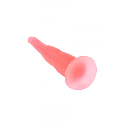 Этот тоненький фаллос из розового геля выглядит абсолютно реалистично: ярко выраженная головка, слегка вытянутая кверху, и легкий рельеф в виде складочек имитируют формы настоящего пениса.
