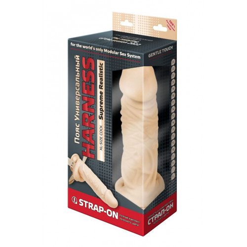 Металлическое кольцо в конструкции харнесса - позволяет использовать любые фаллоимитаторы с присоской и большинство плагов. В данной комплектации пояс предлагается в телесной цветовой гамме как насадки, так и фаллоимитатора. Размер пояса - 40-64.