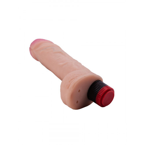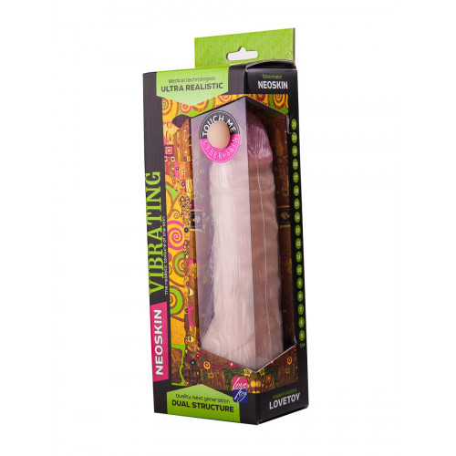 Вибромассажёр телесного цвета. Имеет форму члена с ярко выраженной головкой. Необычайно приятный, рельефный, выполненный из материала неоскин, передающий эффект мягкой реалистичной текстуры кожи, не имеет швов. Виброэлемент расположен по всей длине изделия. Степень вибрации регулируется при помощи кнопки, расположенной в основании. Рабочая длина - 15 см.