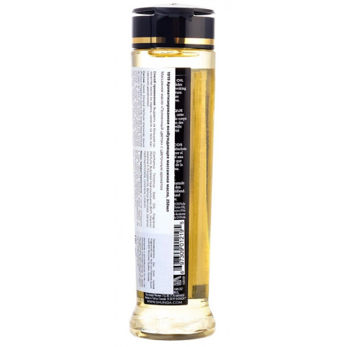Это на 100 % натуральное масло с упоительным ароматом, легко скользит по коже, не оставляя жирной пленки. Запах массажному маслу придают эфирные масла и отдушки, что в отличие от большей части другой продукции SHUNGA, ароматизированной вкусовыми добавками, делает его несъедобным.