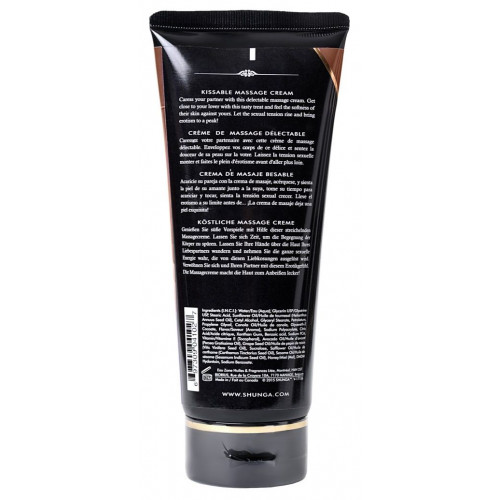 Массажный крем для тела с изысканным ароматом шоколада. Съедобный, не содержит сахара. Дарит коже гладкость и увлажнение, обеспечивает длительное скольжение. Нежирный, дарит ощущение свежести, превращает тело партнёра в лакомство.