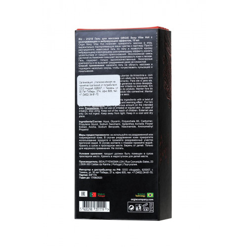 Разогревающий гель для массажа ORGIE Sexy Vibe Hot с эффектом вибрации - 15 мл.