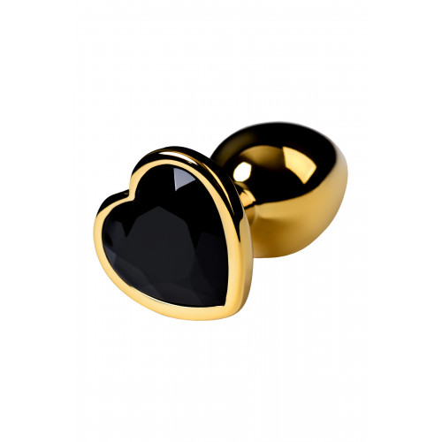 Анальная втулка с кристаллом сердце Medium Gold черный 8 см