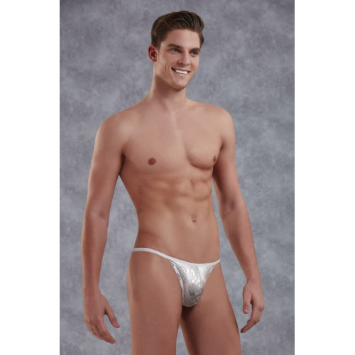 Мужские стринги-ниточки от Doreanse серебристого цвета с имитацией змеиной кожи.