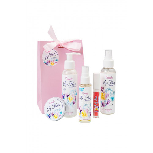 | Характеристики | ЦветочныйВуаль для волос Eromantica «La fleur», 50 мл;Парфюмированный спрей для тела Eromantica «La fleur», 100 мл;Блеск для губ возбуждающий Eromantica «La fleur» со вкусом Pina colada, 10 мл;Ухаживающий мист для тела Eromantica «La fleur», 100 мл;Твердое массажное масло Eromantica La fleur с блеском, 20 г; Подарочный пакет розовый с лентой. |