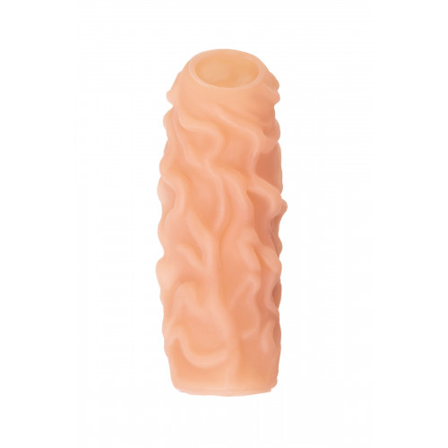 Открытая насадка с фантазийным рельефом от KOKOS предназначена воплотить фантазии о взаимном удовольствии. Реалистичная насадка на пенис - необходимый элемент для вашей сексуальной игры, если вы хотите максимально удовлетворить свою партнершу и сделать секс незабываемым.  Откройте новые возможности:  Увеличенный объем полового члена на 30% добавляет мужчине уверенности в своих сексуальных возможностях. Дополнительная стимуляция партнерши с помощью рельефа для яркого и насыщенного оргазма. Увеличение продолжительности полового акта у мужчины - задержка эякуляции, и наращивание темпа приближения оргазма у женщины.  Насадка имеет форму “рукав”, плотно прилегает к пенису, создавая дополнительную толщину и оставляя головку открытой. Это позволяет сохранить чувствительность головки, задерживая эякуляцию. В основании есть отверстие для мошонки, с помощью которого вы надежно зафиксируете насадку на пенисе, не ограничиваясь в активных движениях. Насадка, за счет плотного облегания мошонки и головки, усиливает эрекцию.