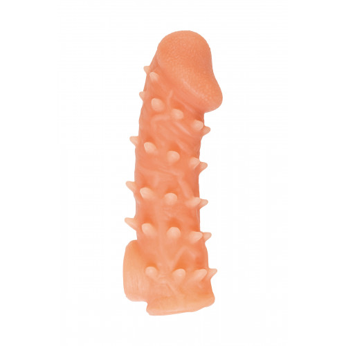 Увеличивающая насадка с фантазийным рельефом в виде пупырышек от Kokos открывает новые возможности для взаимного удовольствия и воплощает фантазии о внушительном размере пениса. Увеличение продолжительности полового акта у мужчины - задержка эякуляции, и наращивание темпа приближения оргазма у женщины. Насадка придает дополнительный объем и длину половому члену. Мощная головка имеет крупный выступ и очень хорошо стимулирует зону G и вход во влагалище благодаря значительному размеру. Особенный рельеф в виде мягких шипов по всему стволу насадки деликатно ласкает чувствительные зоны. Дополнительный объем дарит то самое чувство наполненности, увеличивая поток возбуждения. Размер: длина 15,6 см, диаметр 4,2 см. Цвет телесный. Для более комфортного использования рекомендуем приобрести смазку на водной основе и очищающий спрей Clear Toy 100 мл для обработки изделия.