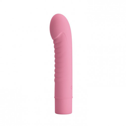 Нежно-розовый мини-вибратор Mick с ребрышками - 13 см.