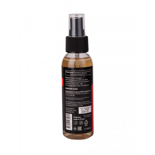 Волнующий и энергичный аромат в сочетании с феромонами и афродизиаками окутает мифической аурой и создаст образ современной Клеопатры. Феромоны разбудят романтические чувства, а афродизиаки окажут благотворное влияние на интимную сферу. Аромат: восточно-древесный. Ноты зеленого мандарина, жасмина, ванили, сандала, амбры. Спрей для тела можно использовать как полноценную парфюмерную воду за счет высокой концентрации парфюмерных композиций, но при этом по очень доступной цене. Кроме прекрасного аромата вы получите дополнительный уход за счет содержания в составе пантенола и аллантоина: смягчает, увлажняет, регенерирует кожу, оказывает противовоспалительное, заживляющее действие, повышает устойчивость коллагена кожных покровов к негативному влиянию внешних факторов. Эффект: незабываемый аромат, прекрасное настроение, ухоженная и красивая кожа, больше взглядов, привлекательность.