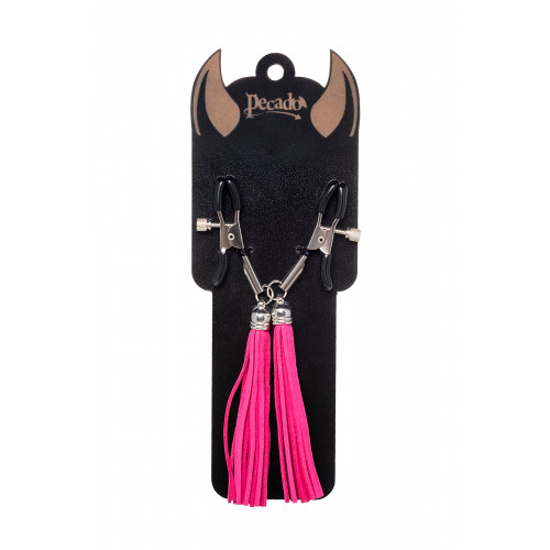 Хотите усилить ощущения от страстных игр с партнером? Увеличить степень возбуждения до невозможного можно с помощью зажимов-прищепок ручной работы от Рecado. Невероятно сексуальный аксессуар пробудит фантазию и повысит чувственность эротических зон. Мягкие резиновые накладки оберегают соски от повреждений. Металлический винт регулирует степень сжатия зажимов: от нежно-приятного до сильно-грубого. На концах черные резиновые наконечники, для безопасного воздействия на нежные участки тела. Компактный размер удобно вмещается как в женскую, так и в мужскую руку. Кисточки из натуральной замши не только визуально украшают эротический атрибут, но и еще утяжеляют его. Для самых смелых и искушенных любителей доминировать и подчиняться. Ручная работа. Надежная высококачественная фурнитура. 100% натуральная замша. Размер: общая длина зажимов 14 см, длина кисточки 8,5 см. Не требуют специального ухода.