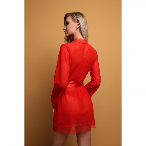 Изысканный красный пеньюар придаст особый шарм романтическому вечеру. Изящный силуэт и яркий цвет добавляют загадки и соблазна, а нежное кружево - нотку женственности и утонченности. Легкая струящаяся ткань будет плавно обвивать ваши формы, подчеркивая соблазнительные изгибы вашего тела. Кружевная отделка по краю рукавов, подола и бортов пеньюара превращают его из простой одежды в произведение искусства. Атласный пояс не только подчеркнет талию, но и может стать элементом эротической игры. Пеньюар можно сочетать с другими элементами белья, например, чулками или корсетом. Почувствуйте себя воплощением соблазна и страсти! В комплекте: пеньюар, пояс. Цвет красный. Размер S/M.