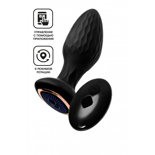 Черная анальная вибровтулка Tucana с ротацией и управлением через приложение - 12 см.