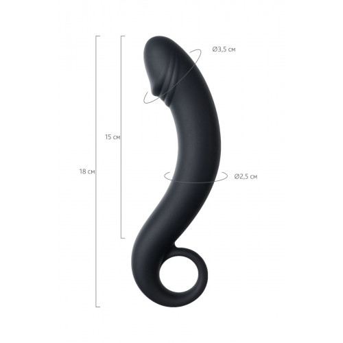 Это секс-игрушка для анальных игр и наслаждений. Изогнутая форма с имитацией головки пениса позволяет во-первых комфортно вводить ее в анус, а во-вторых является отличным способом воздействовать на мужскую точку P, вызывая усиленную волну оргазма. Ручка-кольцо дает возможность легко регулировать степень проникновения и уверенность в том, что игрушка не погрузится полностью внутрь. Рабочая длина - 15 см.