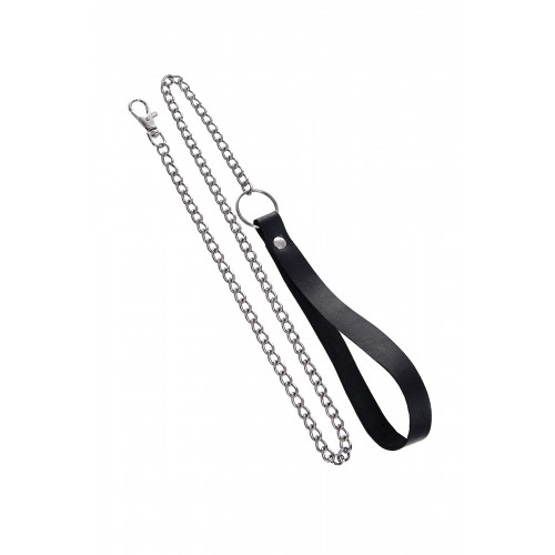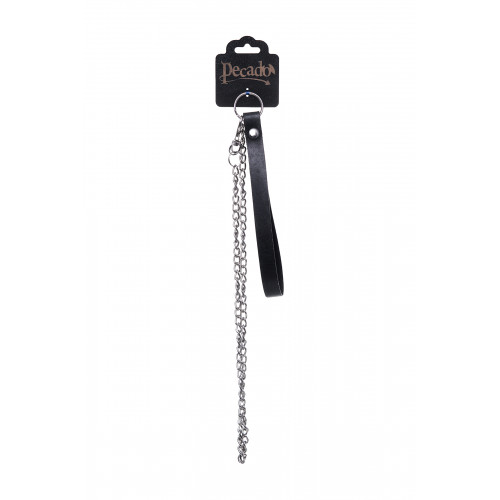 Поводок для ошейника с карабином производства Pecado BDSM станет отличным дополнением в ваш арсенал БДСМ-атрибутики. Кожаная рукоятка-петля с металлической цепью крепится к ошейнику или другим БДСМ-аксессуарам с помощью карабина. Материал: натуральная кожа. Цвет черный. Размер: длина поводка 80 см.