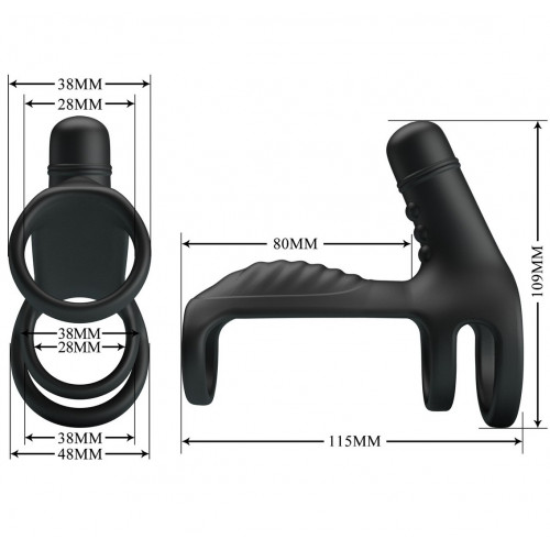 Вибрирующая повязка на пенис от Pretty Love предназначена для максимального удовольствия пар - без проблем! Исследуйте 10 мощных режимов вибрации, когда узелки удовольствия массируют ее клитор для достижения невероятных кульминаций. Эластичная оболочка удваивается как кольцо для члена, чтобы увеличить вашу эрекцию и отсрочить кульминацию для продолжительного занятия любовью. Эта повязка для пениса сочетает в себе стимулирующие секс свойства вибратора для клитора, оболочки члена и кольца для члена! Элемент питания тип ААА 1 шт. (в комплекте не идут). Размер: длина 11 см, диаметр 2,8 см. Цвет: черный. Для более комфортного использования рекомендуем приобрести смазку на водной основе и очищающий спрей Clear Toy 100 мл для обработки изделия.