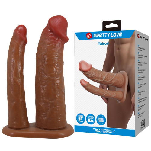 Реалистичная полая насадка на член для двойного проникновения Yairon. Используйте с эрекцией или без, даже после эякуляции, для долгих ночей удовольствия. Диаметр стволов - 4,2 и 2,5 см.