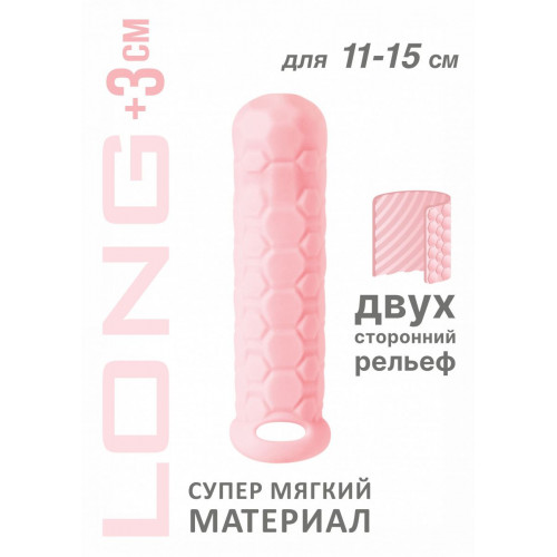 Насадка Long коллекции Homme обеспечивает увеличение размера пениса в длину. Материал насадки - гипоаллергенный, создающий имитацию мягкой и шелковистой «кожи» ТПЕ. Фиксирующее кольцо на мошонку не только удерживает фаллоудлинитель, но и благодаря сдавливанию может усиливать эрекцию. Двухсторонний нереалистичный рельеф насадки позволит одновременно стимулировать сразу обоих партнеров во время полового акта и дополнительно подарит приятные ощущения. Насадка оснащена встроенным удлинителем. Насадка отлично тянется, продлевает время интимной близости и компенсирует анатомическое несоответствие между партнерами. Длина полости - 12,5 см., диаметр - 2,8 см.