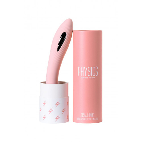 Вибратор с электростимуляцией PHYSICS TESLA G-POINT. 10 режимов электростимуляции. 10 режимов вибрации. Утончённый и элегантный дизайн разработан с учётом женской анатомии. Небольшой изгиб головки стимулирует точку G. Мягкий и нежный силикон приятен к телу, а также прост в уходе. Вибратор генерирует разряды микротока, которые ощущаются как нежное покалывание. Электростимуляция сокращает интимные мышцы, таким образом повышая их тонус. Оргазм с вибраторами Physics глубокий и насыщенный, благодаря притоку крови и кислорода к органам тазового дна.Не требует батареек и заряжается с помощью USB-провода (в комплекте). Рабочая длина - 15 см.