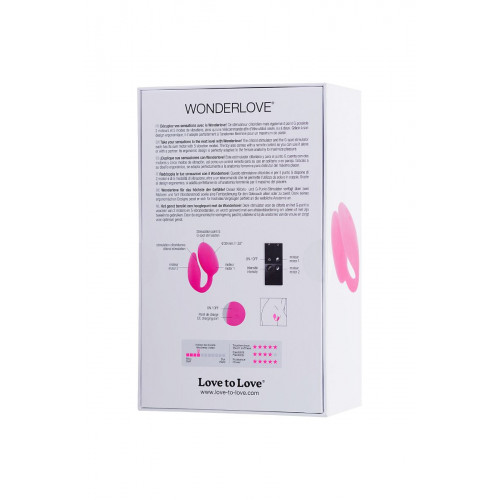Этот многофункциональный стимулятор производитель смело характеризует как «самые лучшие вибрирующие яйца для клитора и точки G». И эта смелость оправдана –стимулятор и вправду очень хорош! 2 мощных двигателя, обеспечивающих работу до2часов без подзарядки, 5режимов вибрации, сила, напор и натиск! Если ты хочешь действительно классного выплеска энергии и бурного оргазма, воспользуйся WonderLOve. Дизайн секс-гаджета идеально адаптирован к женской анатомии и продуман до мелочей. Даже его розовый цвет выбран не просто так, а на основании фокус-групп, подтвердивших, что «девочки любят розовое». Что еще важно – эту игрушку можно смело использовать в совместных играх с партнером, причем в любом месте. И даже на расстоянии, ведь в комплекте к стимулятору идет пульт дистанционного управления.