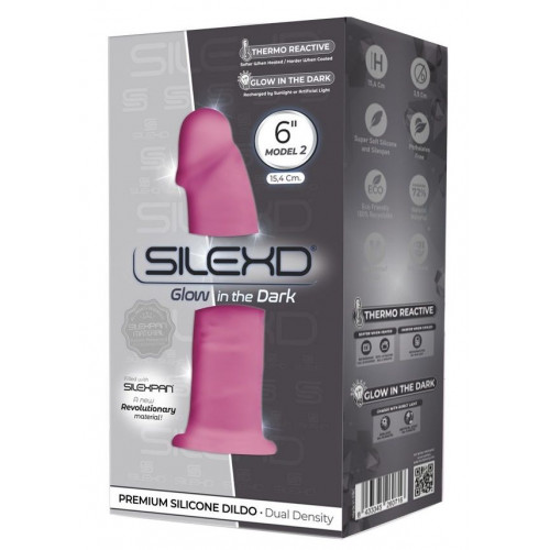Розовый, светящийся в темноте фаллоимитатор Model 2 - 15,4 см.