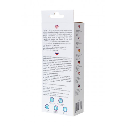 Вибратор POLLY создан для того, чтобы удовлетворить все ваши желания и воплотить в жизнь самые смелые фантазии. Девайс удобен и прост в применении, всего нажатие кнопки, и он готов дарить вам наслаждение. К вашим услугам семь уровней вибрации и мощный моторчик. Изготовлен из легкого в эксплуатации, нетоксичного, гипоаллергенного силикона. Рабочая длина - 13,5 см.