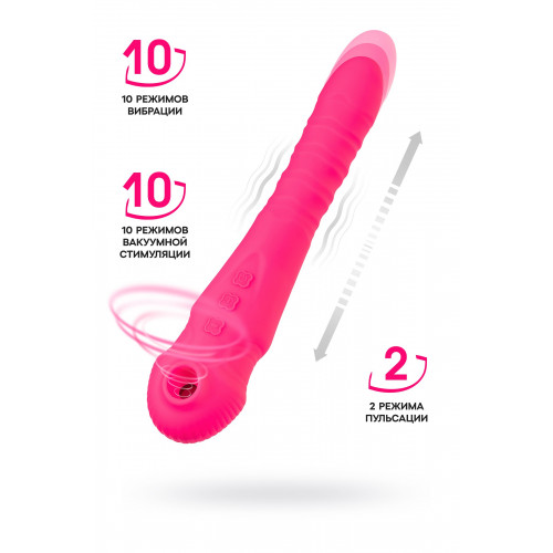 Погружная часть оснащена механизмом, который создает пульсирующие фрикции, словно настоящий интимный контакт. Поступательные движения вперед и назад имитируют фрикции, даря вам максимальное удовлетворение. Вакуумная стимуляция второй части помогает достичь оргазма нового уровня яркости.