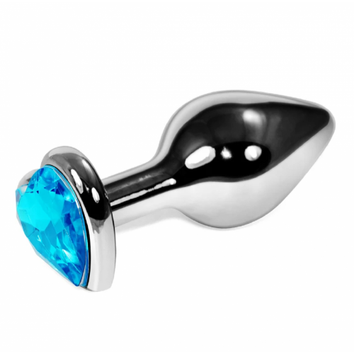 Анальная втулка с кристаллом сердце Small голубой 7 см