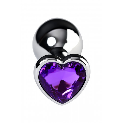 Серебристая анальная втулка из легкого сплава ощутима по форме, но комфортна по весу. Страз в форме сердечка цвета аметист украсит ваши игры. Вес 165 гр.