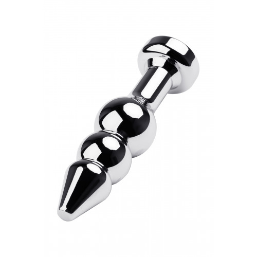 Серебристая анальная втулка оригинальной формы со стразом цвета турмалин. Удобный для ввода маленький носик плавно переходит в два шара. Еще одна особенность этой игрушки - удлиненное расстояние до стоппера. Для более комфортного использования рекомендуем приобрести смазку на водной основе и очищающий спрей Clear Toy 100 мл для обработки изделия.
