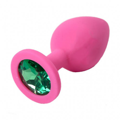 • Анальная втулка фуксия с кристаллом Large изумрудный 9,5 см