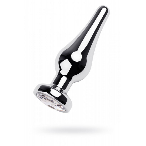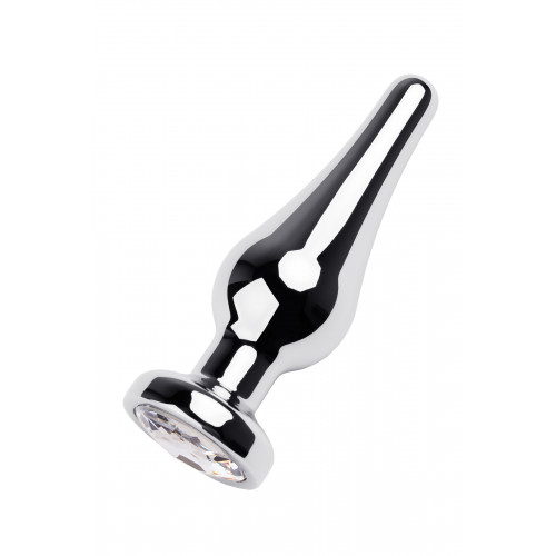 Анальная втулка конус серебро с кристаллом цвета алмаз 10 см