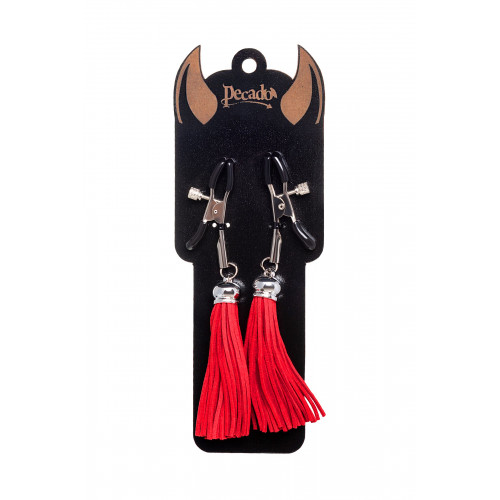 Зажимы на соски «Прищепки» с красными кисточками из замши
