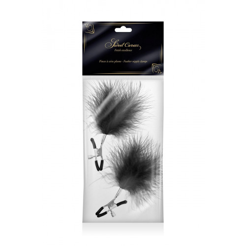 Зажимы на соски с черными пуховыми кисточками Sweet Caress Feather Nipple Clumps