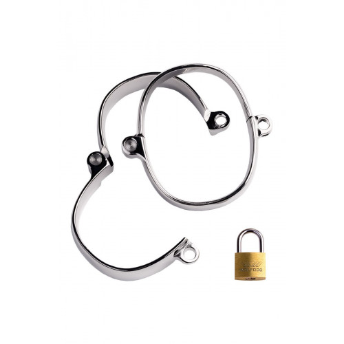 Металлические наручники - строгий девайс для ограничения свободы. Эта модель фиксирует запястья близко друг к другу и закрывается на замок, ключ от которого хранится у Господина или Госпожи. Размер браслетов - 4,5 х 5,5 см.