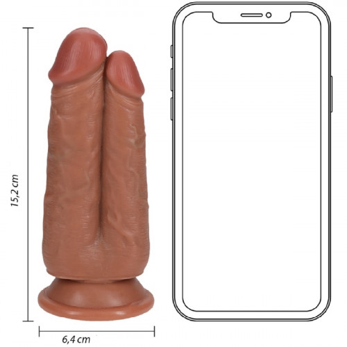 Двойной реалистичный фаллоимитатор с двумя ярко выраженными округлыми головками, рельефным покрытым венками телом для имитации двойного вагинального проникновения. Имитация удивительно реалистичная на ощупь. Сверхпрочная присоска позволяет надежно закрепить игрушку на любой гладкой поверхности или использовать в качестве страпона. Размер: длина 18 см, глубина введения 15,2 см, диаметр 3,6-3,2 см. Цвет темный телесный. Для более комфортного использования рекомендуем приобрести смазку на водной основе и очищающий спрей Clear Toy 100 мл для обработки изделия.