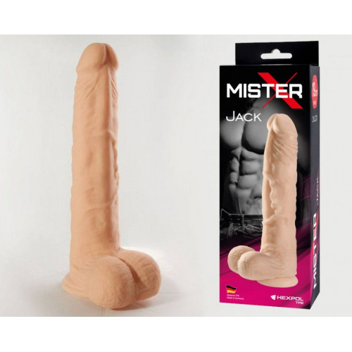 Телесный фаллоимитатор с мошонкой на присоске Jack