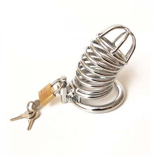 Насадка выполнен из хромированной стали. Открытость конструкции, позволяет проводить гигиенические процедуры без снятия пояса, тем самым допуская постоянное ношение. Длина клетки 8,4 см., диаметр 3,4 см.