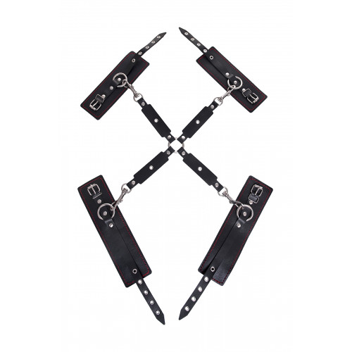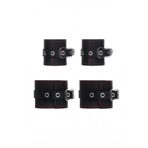 С набором от Pecado BDSM воплощайте в жизнь смелые сексуальные фантазии, которые до этого момента были только мечтой. Хотите избавиться от искушения? Просто поддайтесь ему с Pecado BDSM! Комплект для бондажа состоит из четырёх кожаных ремешков в виде крестовины, с карабинами на концах, пары оков и пары наручников, всё это в фирменной деревянной коробке Pecado BDSM. Карабины позволяют легко фиксировать оковы, наручники и другие аксессуары для ограничения движений партнера. Однослойные кожаные наручники и оковы с контрастной строчкой красного цвета могут стать стильным аксессуаром на свободных руках, но могут послужить вашим целям и фантазиям по своему прямому назначению. С этим комплектом расширить возможности и способы фиксации проще простого! Варианты и комбинации ограничения свободы партнера зависят только от вашей фантазии и желания. Ширина наручников 6,5 см, длина наручников 20 см. Ширина оков 6,5 см, длина оков - 25 см. Общая длина крестовины - 45 см.