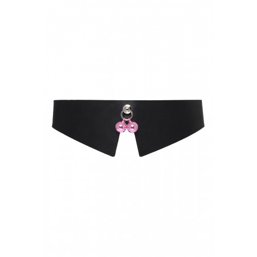 Чокер из натуральной кожи черного цвета, декорирован бубенчиками. Регулируется при помощи ремешка. Размер универсальный. Цвет чёрный.