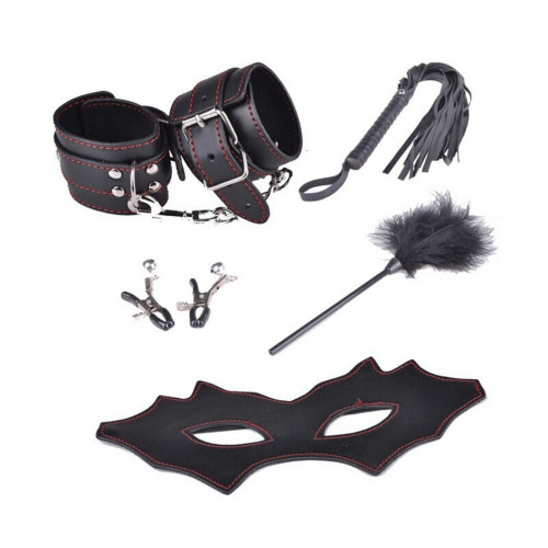 Набор: маска, оковы, плеть, щекоталка, зажимы для сосков
