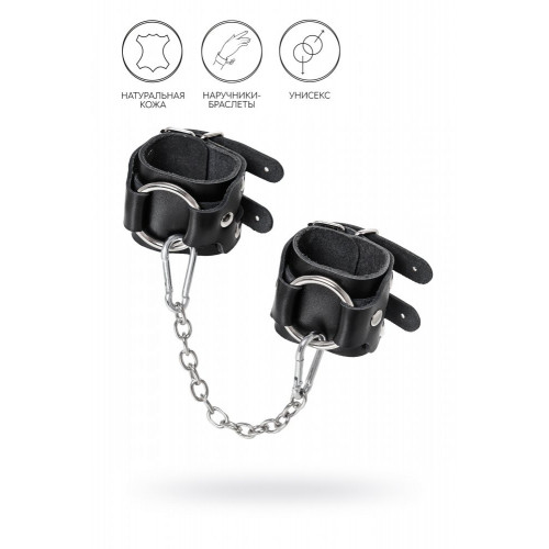 Одни из самых брутальных наручников. Стильные, надежные и устойчивые к долгим нагрузкам. Они созданы, чтобы дарить непередаваемые ощущения в ролевых играх. Изготовлены из прочной и натуральной кожи черного цвета. Ручная выделка материала обеспечивает высокую износостойкость. Заметная толщина аксессуара обеспечивает хорошую посадку на запястьях. На манжетах имеются ремешки с широким запасом регулировок, благодаря чему можно легко подобрать нужный обхват. Надежная высококачественная фурнитура хорошо фиксирует атрибут на руках. При правильном использовании не оставляет следов на теле. Между собой наручники соединены короткой, съемной цепью с двумя карабинами. При желании ее можно заменить на другой аксессуар. Данный сексуальный девайс можно использовать не только для БДСМ-сессий. А также, как стильный браслет в своем ежедневном образе. Идеально подходит и мужчинам, и женщинам, и начинающим, и опытным парам. Наслаждайтесь ролевыми играми! Натуральная кожа. Ручная работа. Износостойкий.