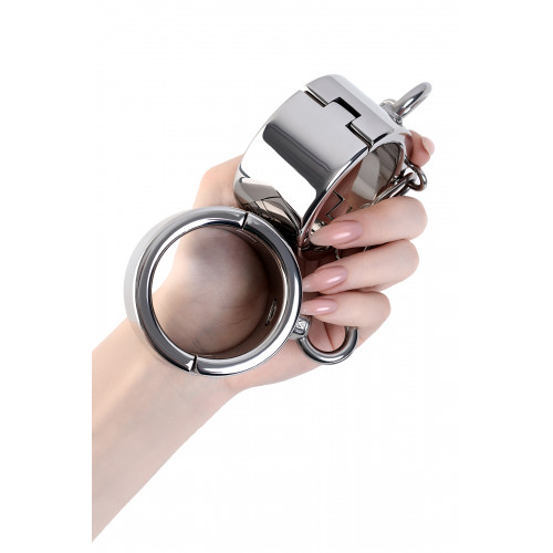 Тяжелые наручники из нержавеющей стали - серьезное ограничение свободы. В таких оковах весом почти в килограмм и шириной 4 см нижний точно почувствует, кто тут Хозяин. Внутренний диметр этого девайса - 53 мм.
