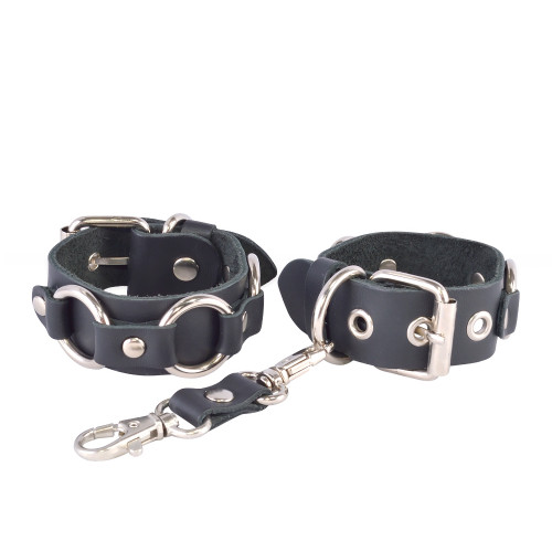 Наручники Sitabella ;Властелин Колец; из натуральной кожи не оставят равнодушными любителей поэкспериментировать и позволят доминанту почувствовать истинную власть над партнером. Стиль задают черный цвет в сочетании с мелаллической фурнитурой, украшены кольцами и клепками. Пряжка поможет комфортно зафиксировать наручники на запястьях. Лаконичные, но при этом красивые наручники подойдут, как для женщин, так и для мужчин, . Соединяются наручники при помощи небольших карабинов, скреплённых кожаной перемычкой. Вся металлическая фурнитура имеет никелевое покрытие. Размер: общая длина наручника около 25 см, ширина ремешка 2,5 см. Цвет черный.