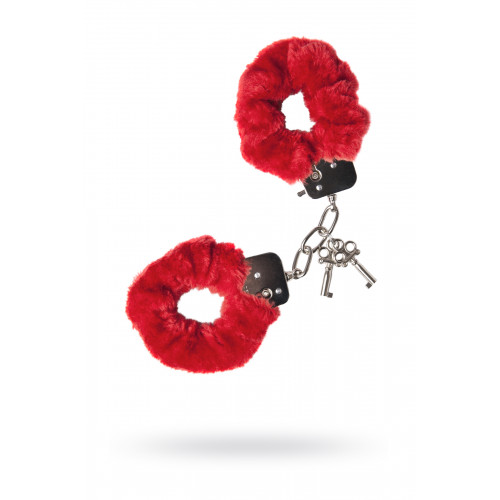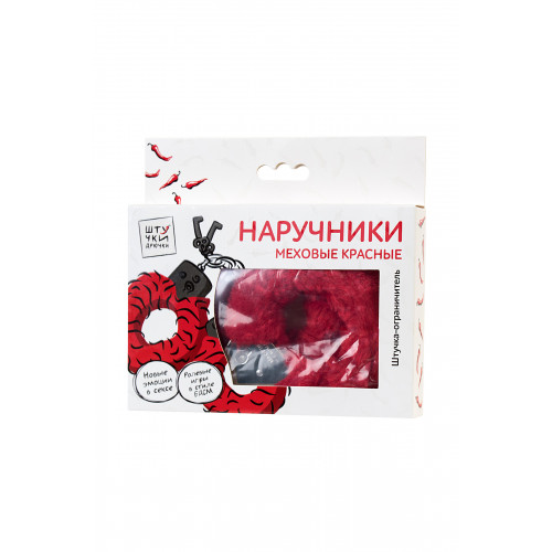 Наручники с металлическим основанием, декорированные красным искусственным мехом. С 2 ключами в комплекте. Регулируемый механизм позволяет сковывать как женские, так и мужские руки. На случай утери ключей или необходимости быстрого освобождения, предусмотрен рычажок быстрого открытия.