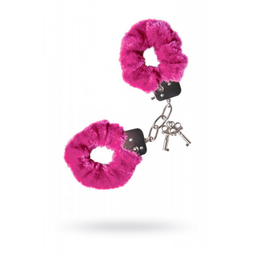 Наручники с металлическим основанием, декорированные розовым искусственным мехом. С 2 ключами в комплекте. Регулируемый механизм позволяет сковывать как женские, так и мужские руки. На случай утери ключей или необходимости быстрого освобождения, предусмотрен рычажок быстрого открытия.